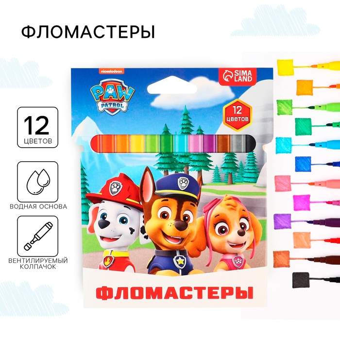 Фломастеры "Щенячий патруль", 12 цветов, вентилируемый колпачок