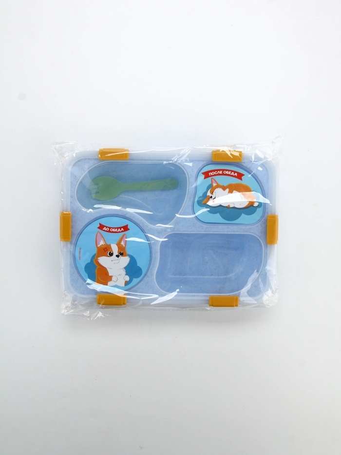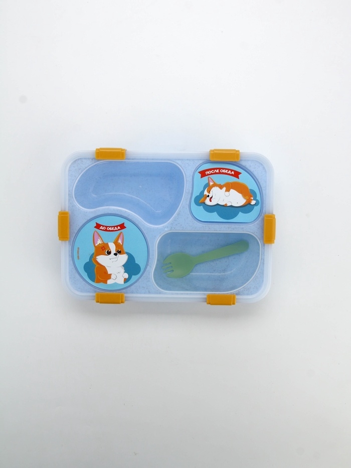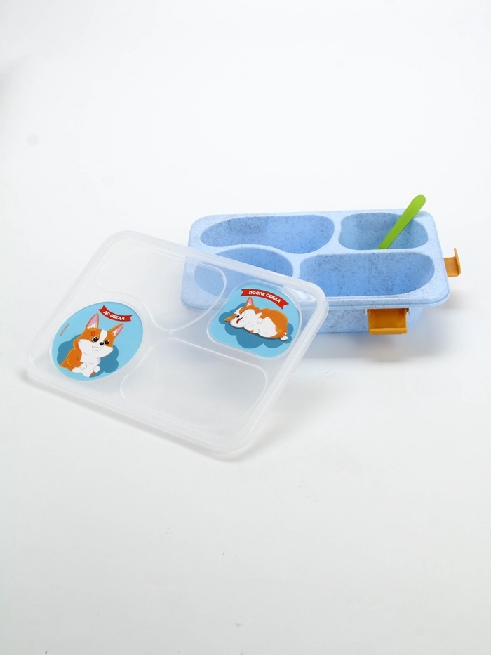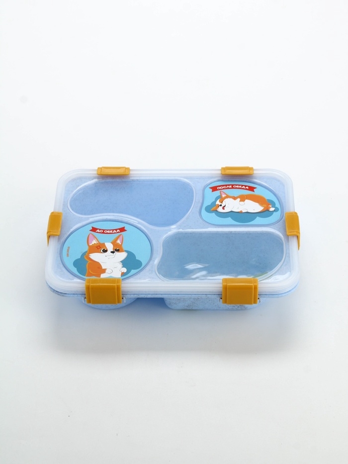 Ланч - бокс с 4 секциями «До/после обеда», 23 х 17 х 5,5 см, голубой