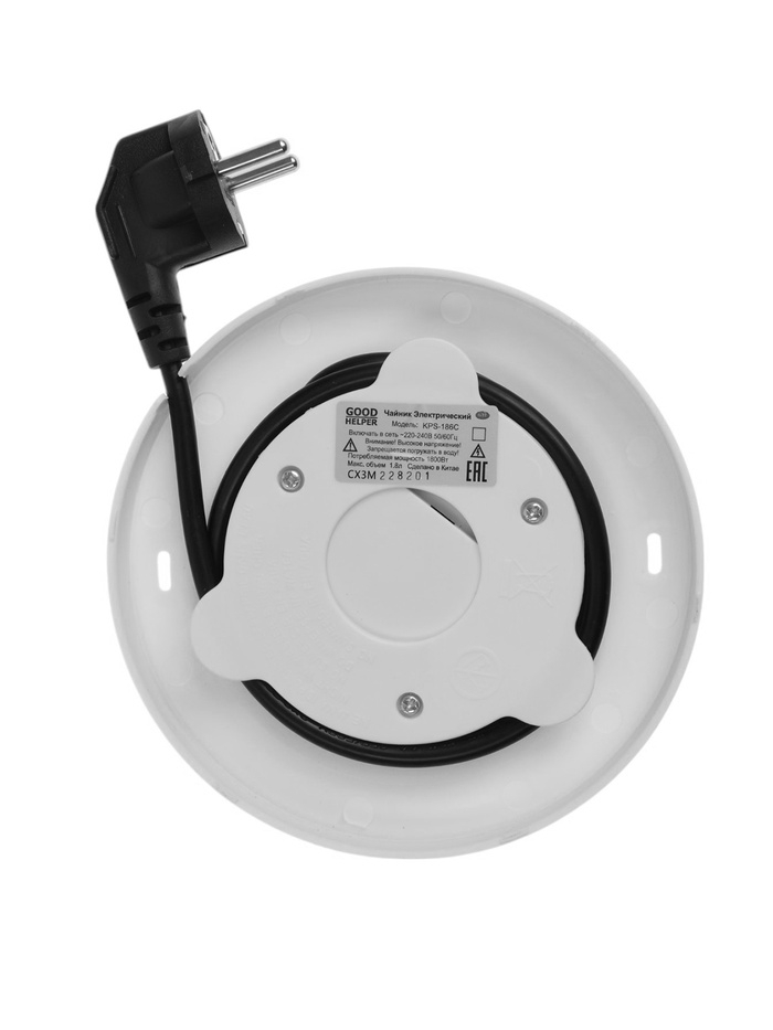 Чайник электрический GOODHELPER KPS-186C, пластик, нерж. сталь, 1.8 л, 1800 Вт, белый