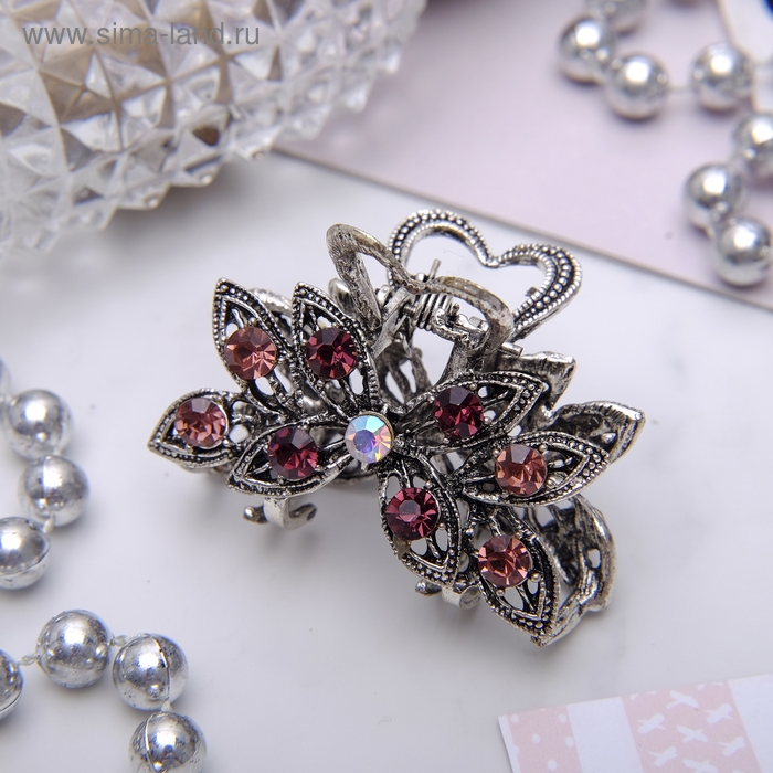 Краб для волос "Чернёный" цветок, 4,8 см, серебро
