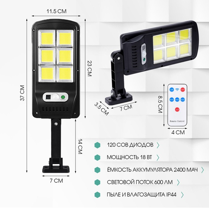 Светильник уличный аккумуляторный настенный, фонарь, 120 диодов, 3 режима