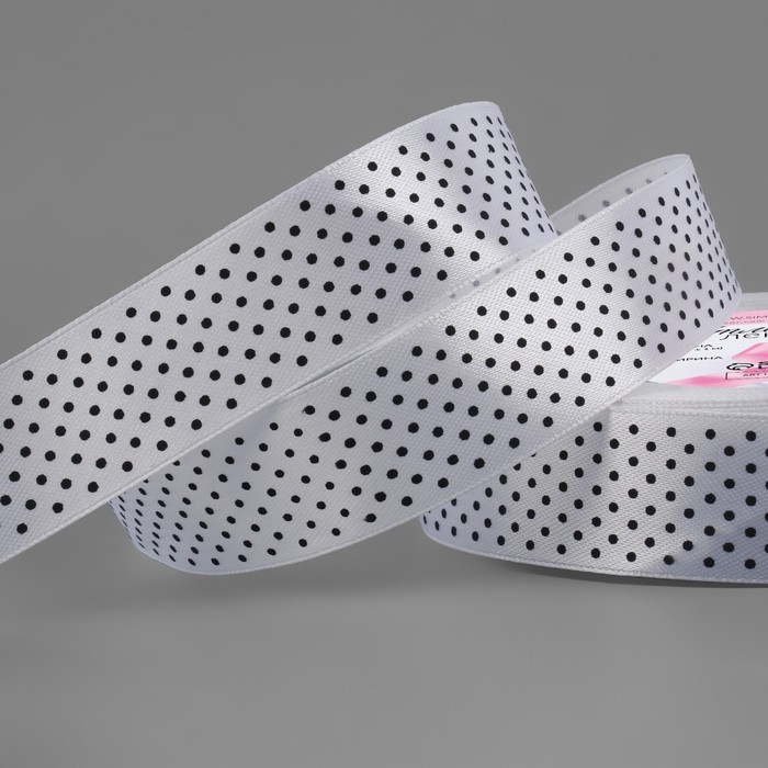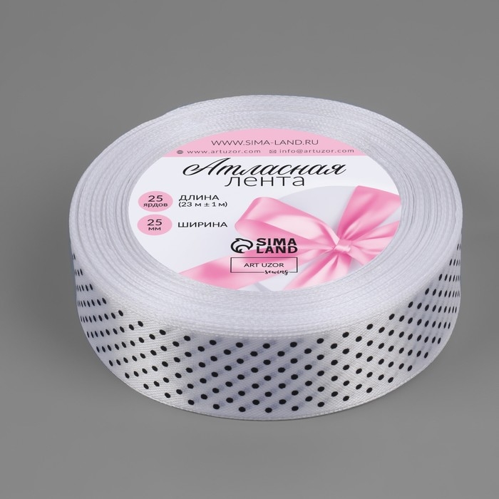 Лента атласная «Горошек», 25 мм × 23 ± 1 м, цвет белый №001
