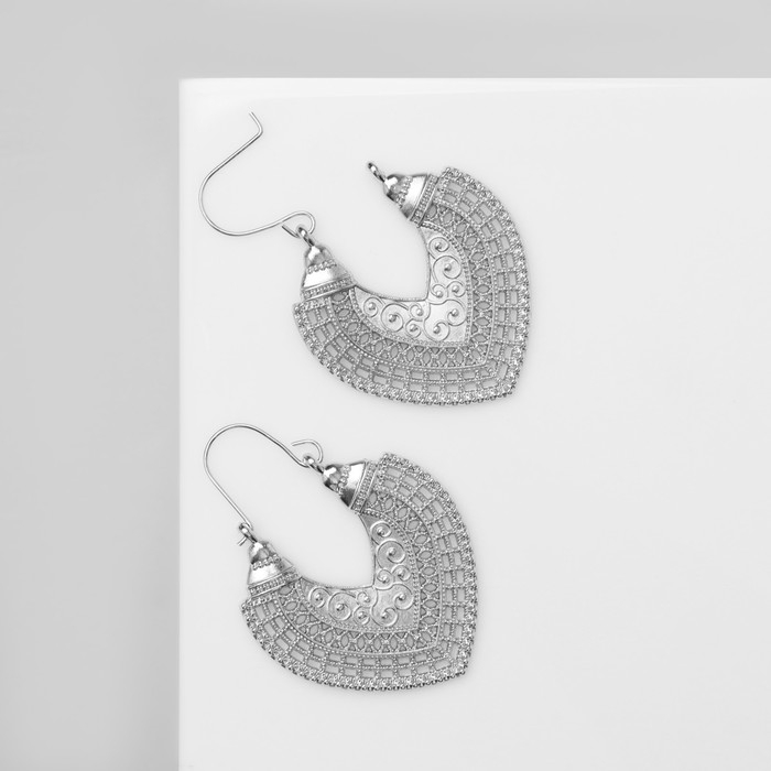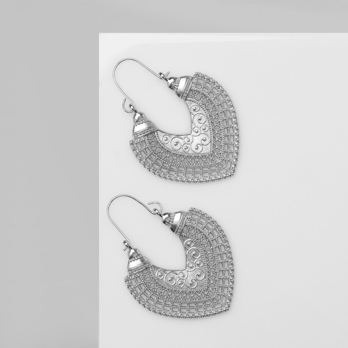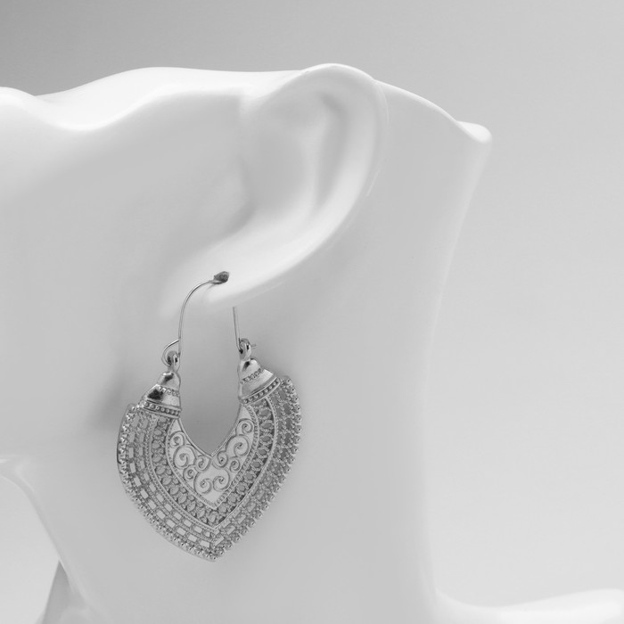 Серьги металл «Восток» сердце, цвет серебро