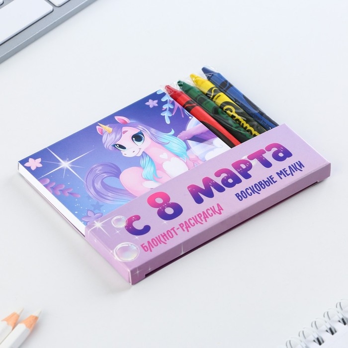 Подарочный набор: блокнот-раскраска и восковые мелки «С 8 марта»