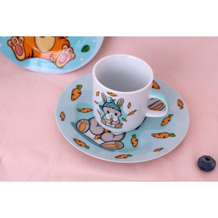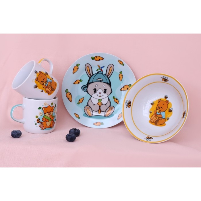 Набор посуды фарфоровой «Зоопарк», 3 предмета: тарелка d=20 см, салатник d=19,8 см, кружка 200 мл