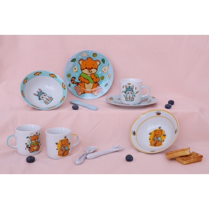 Набор посуды фарфоровой «Зоопарк», 3 предмета: тарелка d=20 см, салатник d=19,8 см, кружка 200 мл