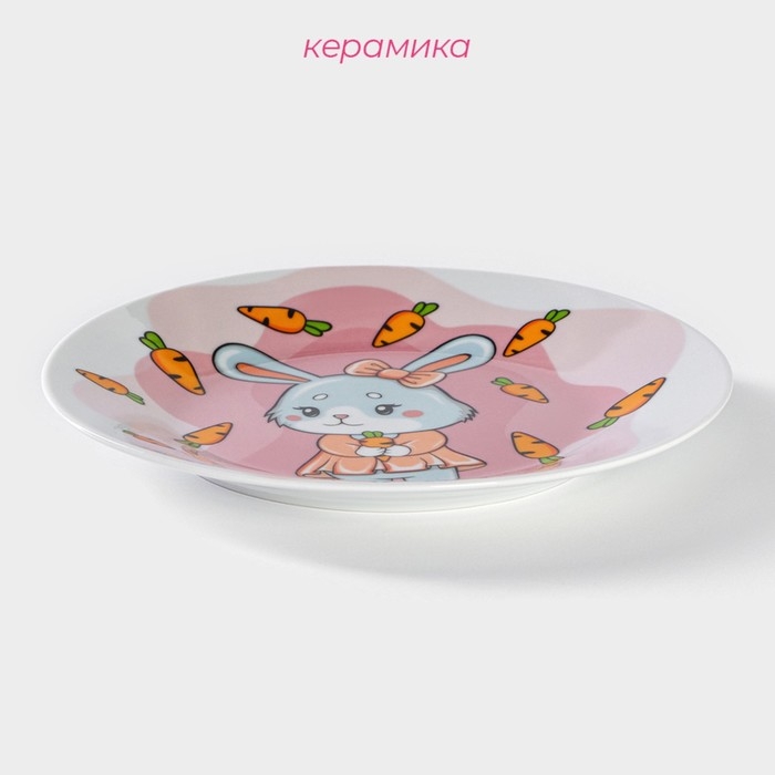 Тарелка керамическая Доляна «Лапочка зайка», d=17,5 см, цвет белый