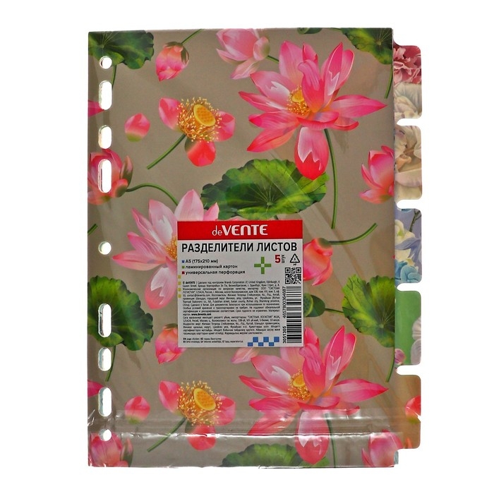 Разделитель листов A5 (210 x 165 мм) цветовой, 5 листов, "deVENTE. Bloom Garden" ламинированный мелованный картон 210 гр, с рисунком, индивидуальная упаковка