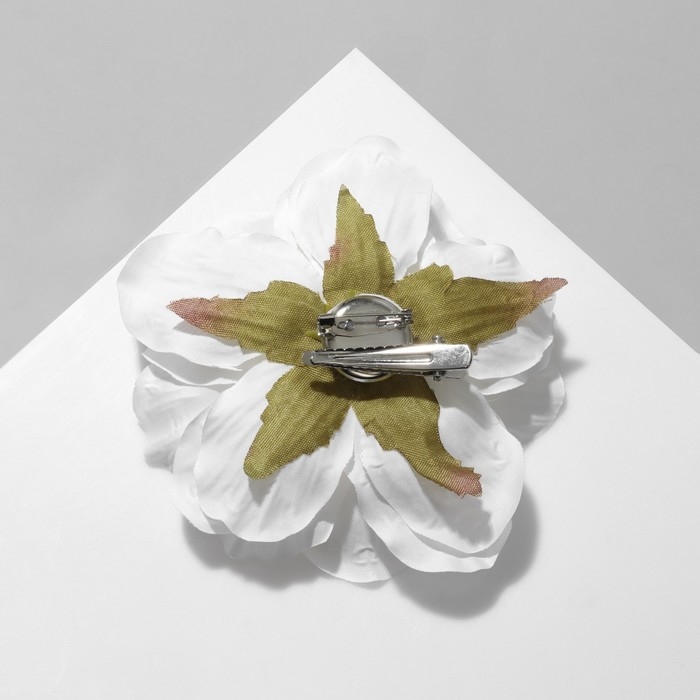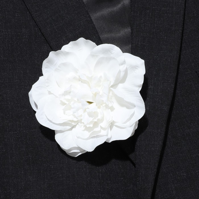 Брошь-заколка текстильная «Цветок» пион, цвет белый
