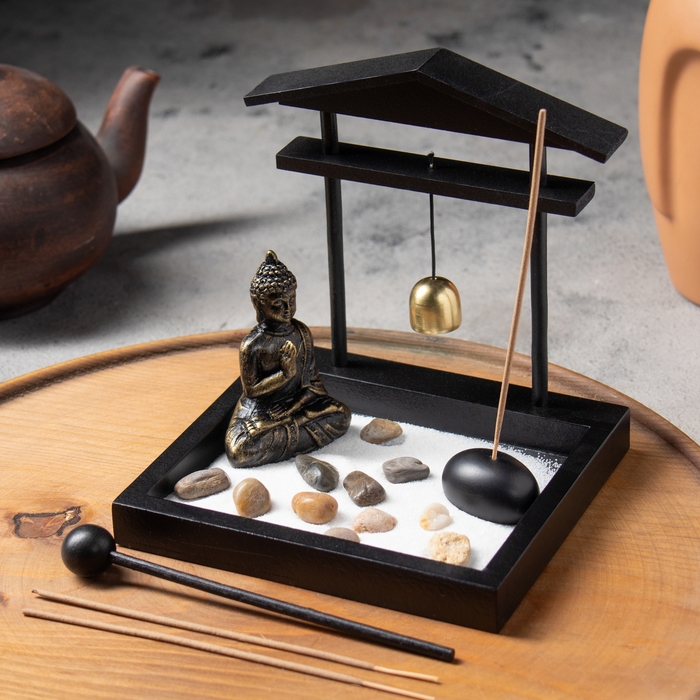Сад камней с подставкой для благовоний "Будда с колоколом"