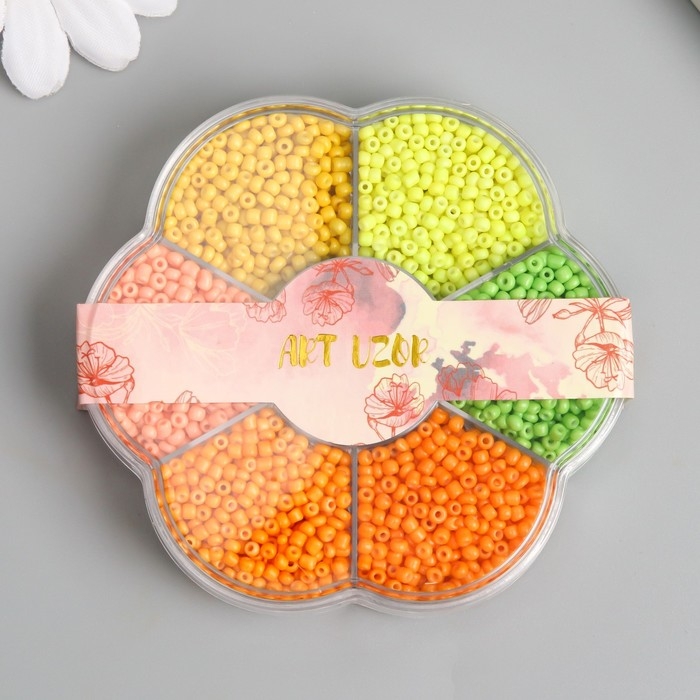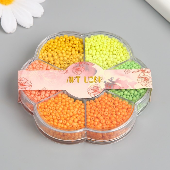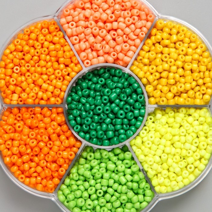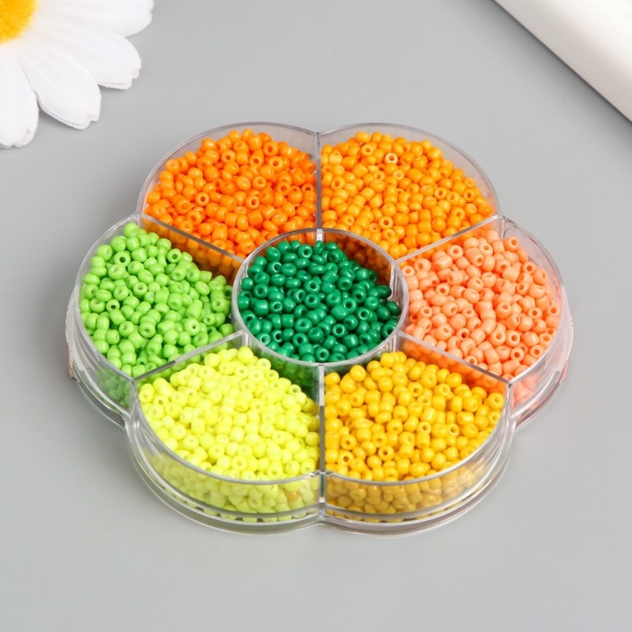 Бисер стекло 12/0 в цветке "Цвета лета" цветной 7 цветов х 8 гр 8,2х8,2х2 см