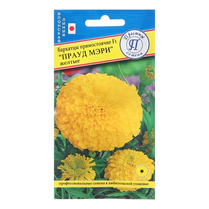 Семена цветов Бархатцы прямостоячие "Прауд Мэри", Желтые, F1, 5 шт