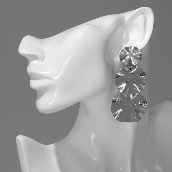 Клипсы висячие «Лёгкость» трио, цвет серебро
