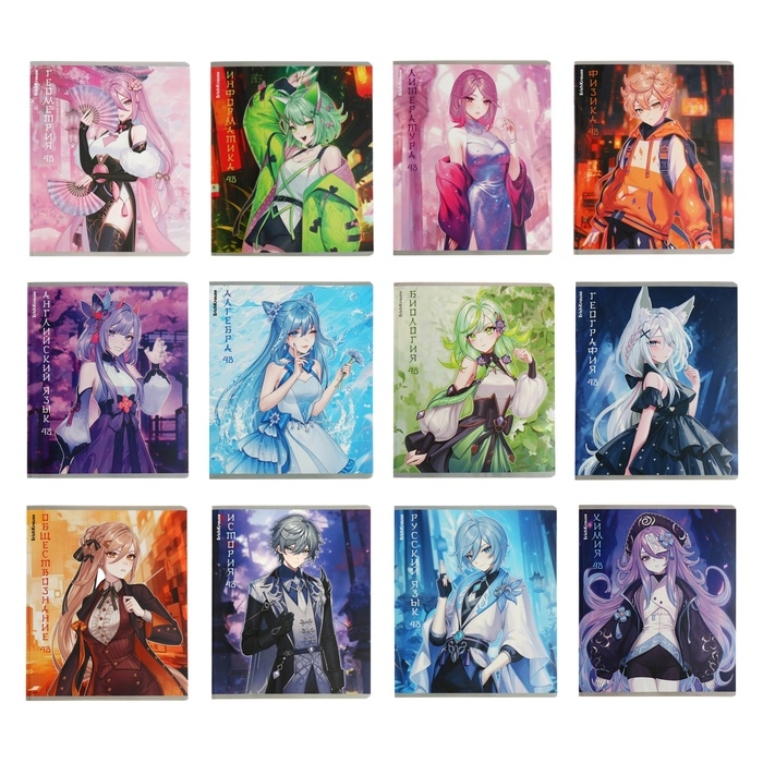 Комплект предметных тетрадей 48 листов, "Комикс Аниме", 12 предметов, со справочным материалом, обложка мелованный картон, УФ-лак (полный), блок офсет