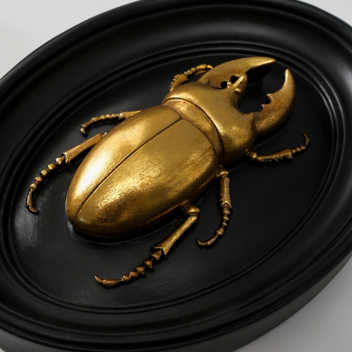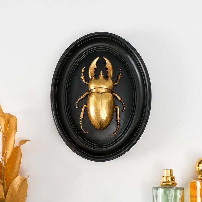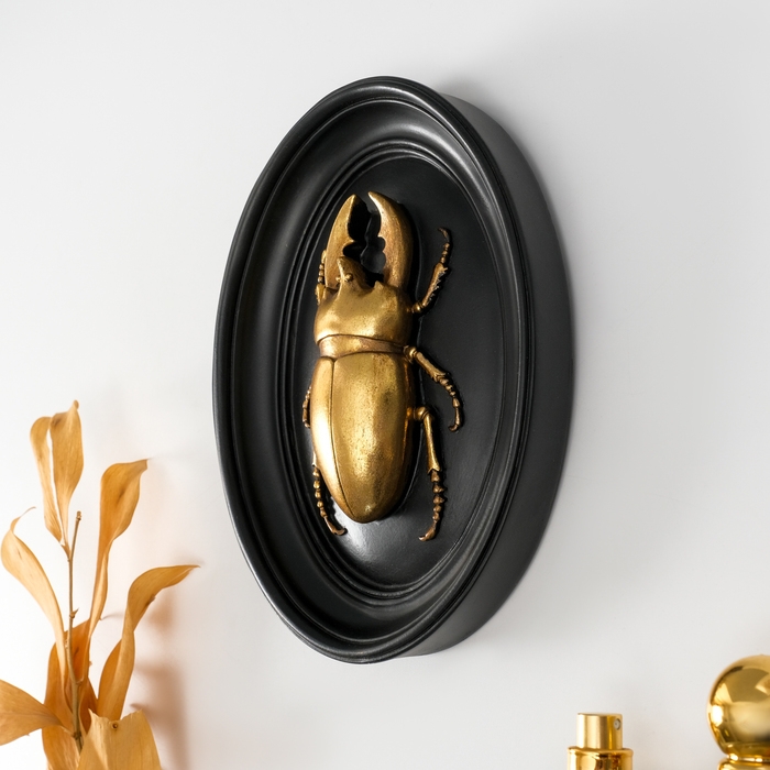 Панно интерьерное полистоун "Жук-олень" чёрный с золотом 15х3х19 см