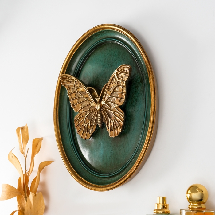 Панно интерьерное полистоун "Бабочка" тёмно-зеленый 20х4х26 см
