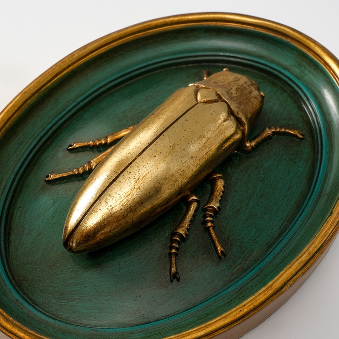 Панно интерьерное полистоун "Золотой жук" тёмно-зеленый 18,5х4,5х24 см