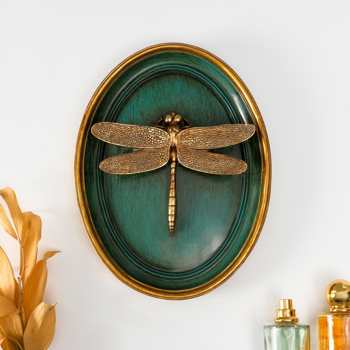 Панно интерьерное полистоун "Стрекоза" тёмно-зеленый 20х4х26 см