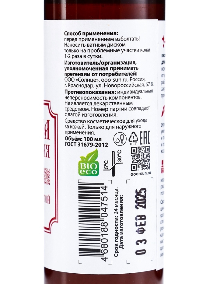 Болтушка Монастырская с салициловой кислотой от прыщей, "Святая рука", 100 мл