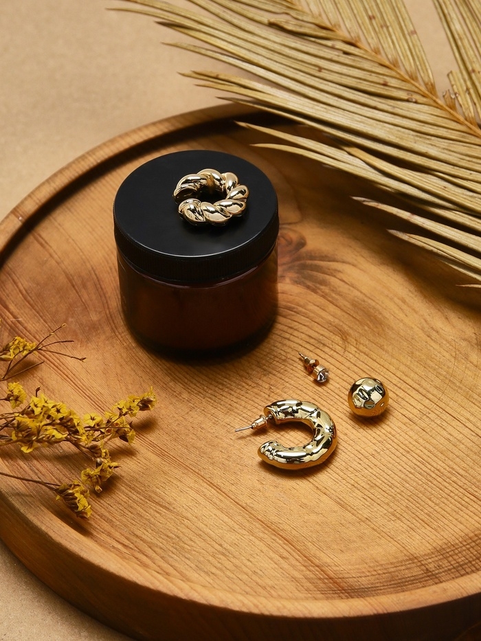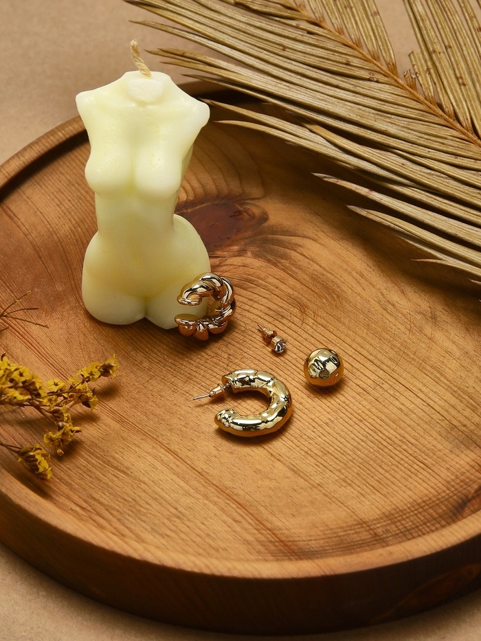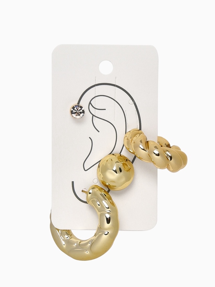 Набор серьги и каффы 4 шт «Мятые» переплетение, цвет золото