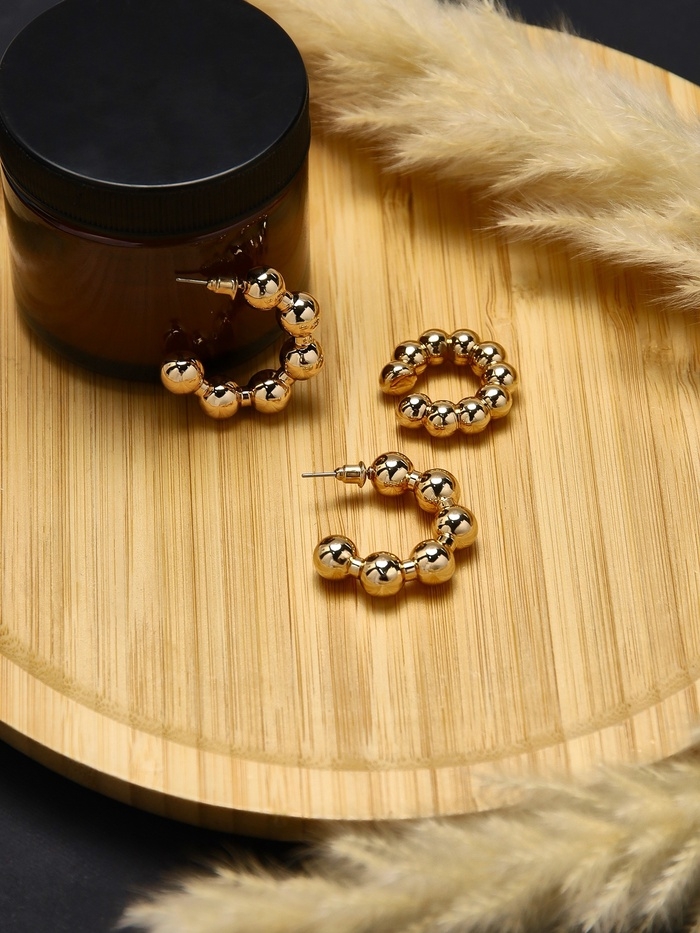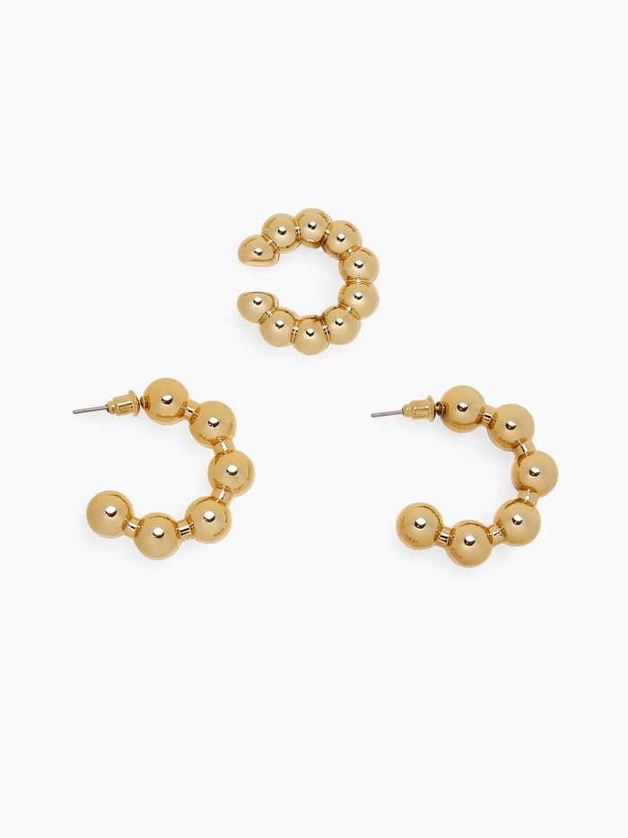 Набор серьги и каффы 3 шт «Бублики» дутые, цвет золото