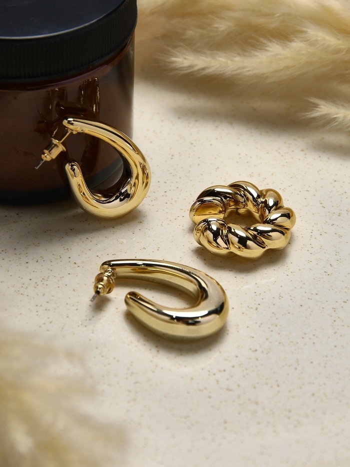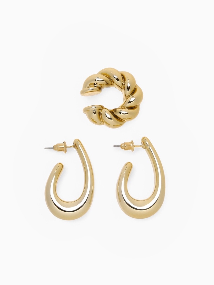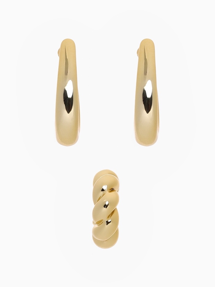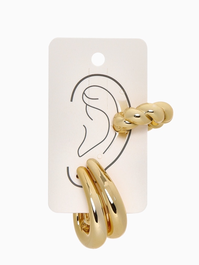Набор серьги и каффы 3 шт «Косичка» капли, цвет золото