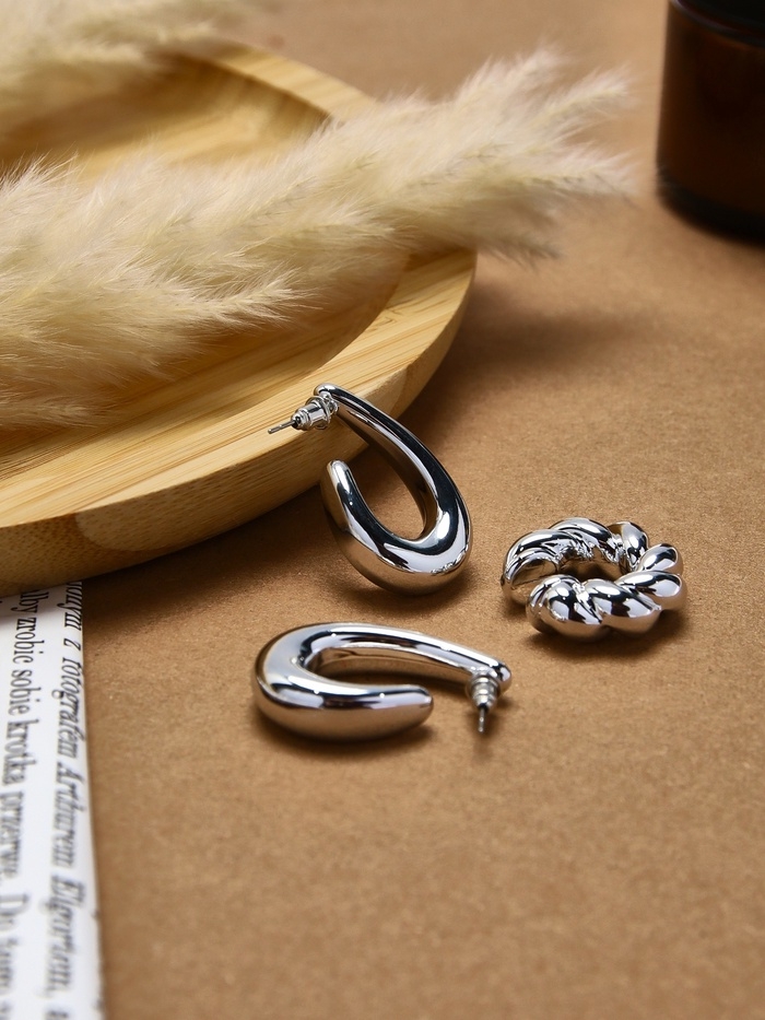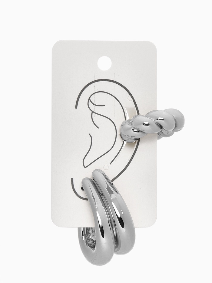 Набор серьги и каффы 3 шт «Косичка» капли, цвет золото