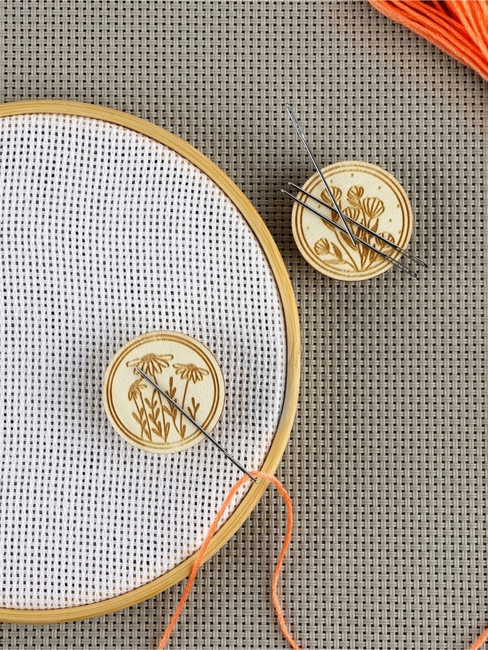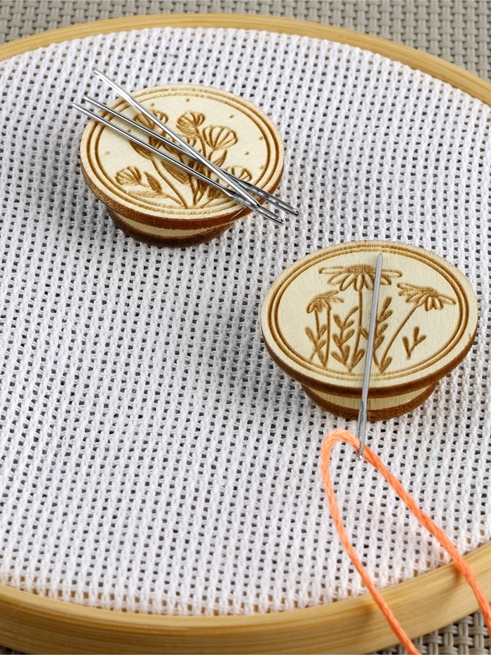 Игольница-магнит цветы для вышивания круг 3см (наб 2шт цена за наб) деревянный TR