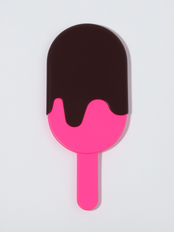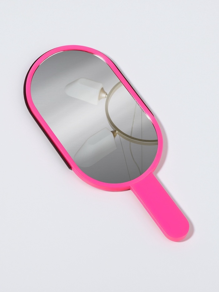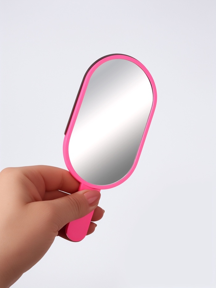 Зеркало с ручкой (1) б/увел 6,7*12/7,8*18см МОРОЖЕНОЕ пластик розовый пакет QF
