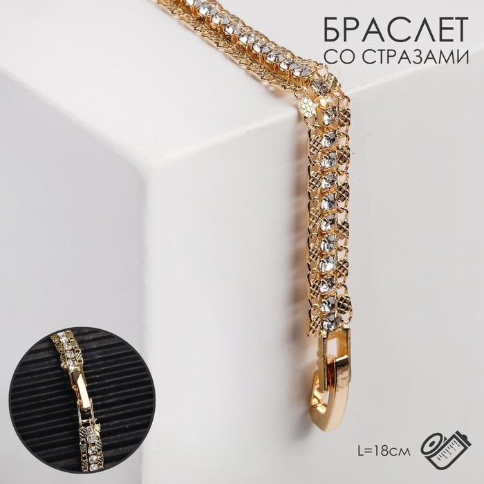 Браслет со стразами «Лёд» красота линий, цвет белый в золоте