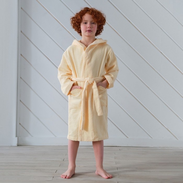 Халат махровый детский "Динозавр" р-р 30 (98-104 см), бежевый