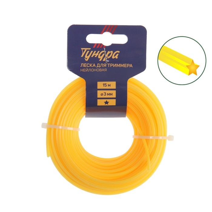 Леска для триммера ТУНДРА, сечение звезда, d=3 мм, 15 м, нейлон