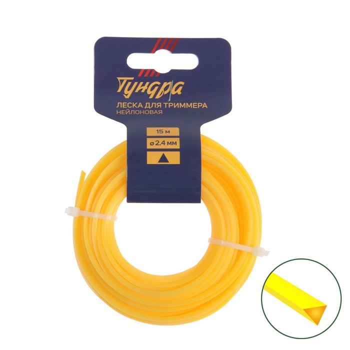 Леска для триммера ТУНДРА, сечение треугольник, d=2.4 мм, 15 м, нейлон