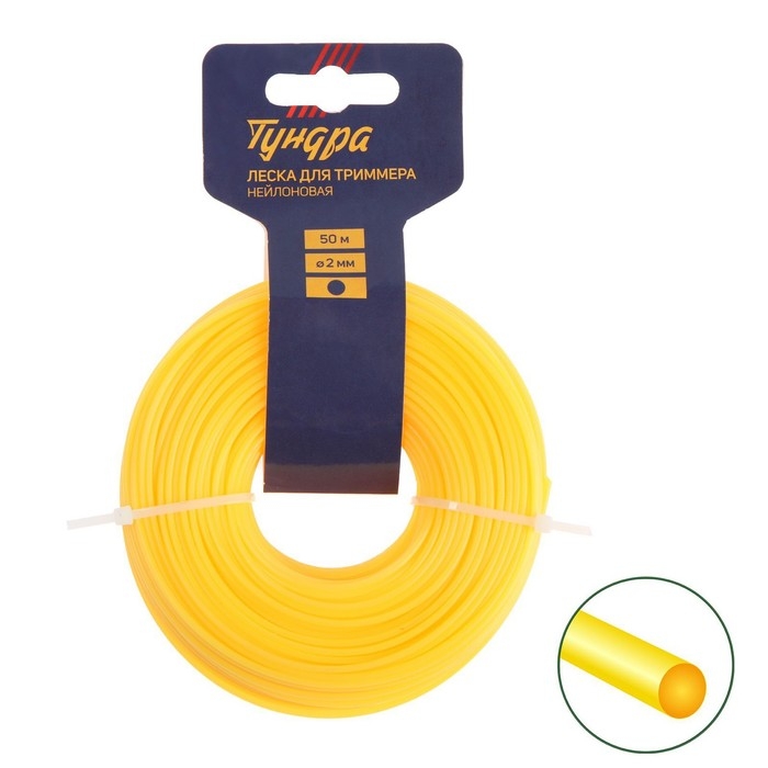 Леска для триммера ТУНДРА, сечение круг, d=2 мм, 50 м, нейлон