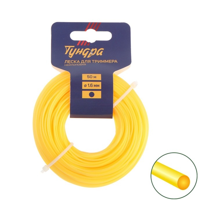 Леска для триммера ТУНДРА, сечение круг, d=1.6 мм, 50 м, нейлон