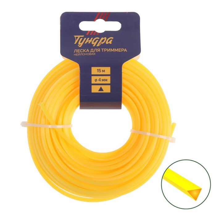 Леска для триммера ТУНДРА, сечение треугольник, d=4 мм, 15 м, нейлон