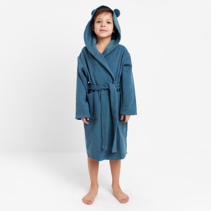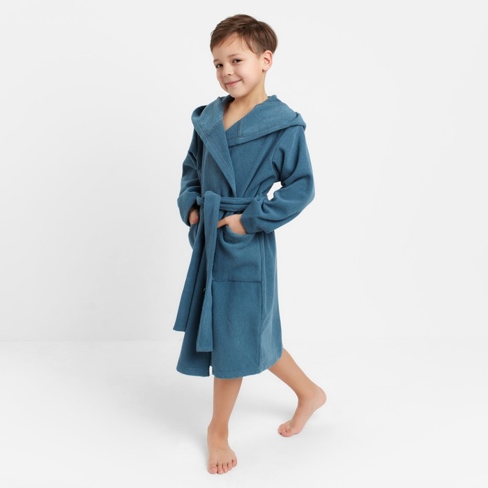 Халат махровый детский "Джентльмен" р. 32 (110-116 см), морская волна