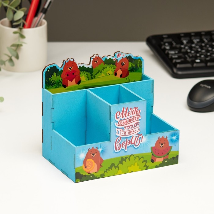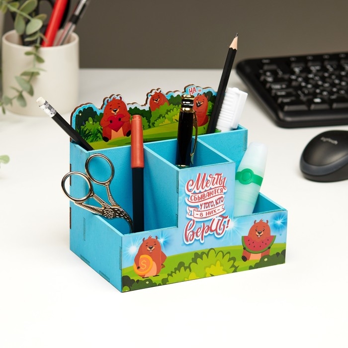 Органайзер для канцелярии "Мечты сбываются у того, кто в них верит!" 4 отделения 15х10х14