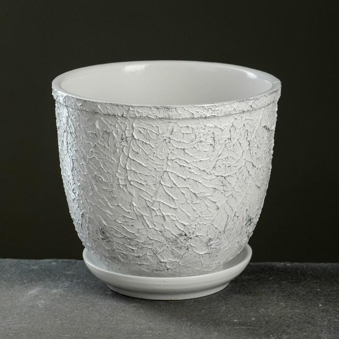 Горшок цветочный "Белое серебро" с поддоном, 1,8л