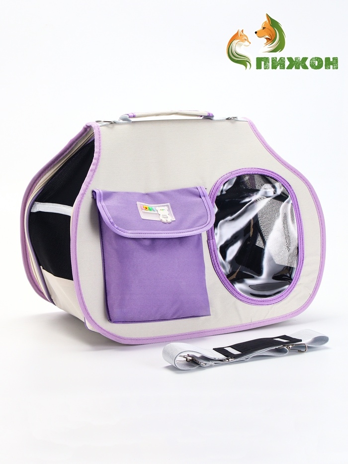 Сумка-переноска с органайзером и окном, 45 х 24 х 34 см, бело-сиреневая