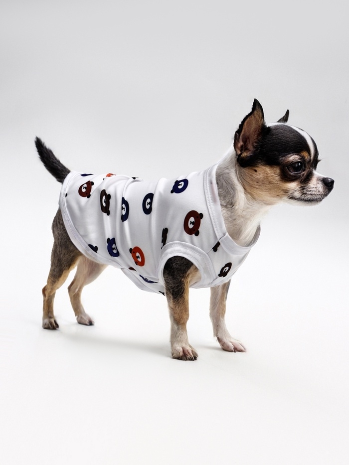 Футболка для животных "Мишка",S (С 25, ОГ 38 см) , белая
