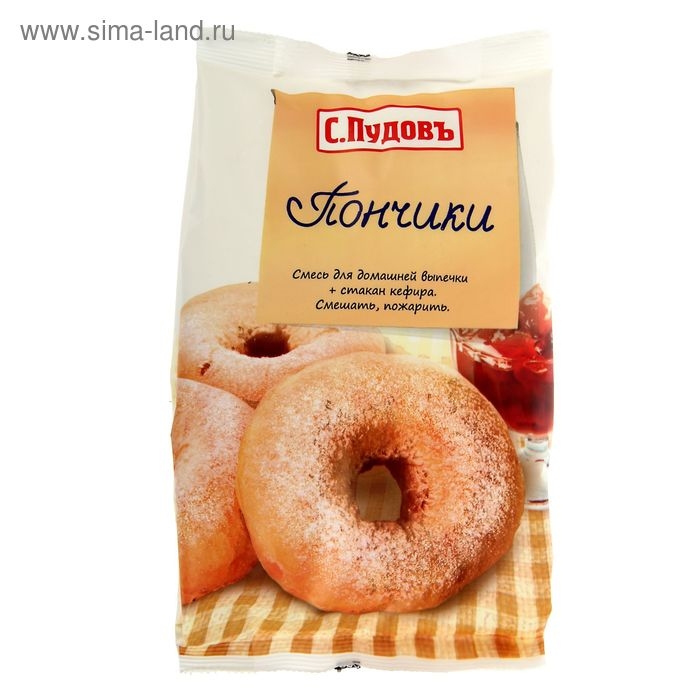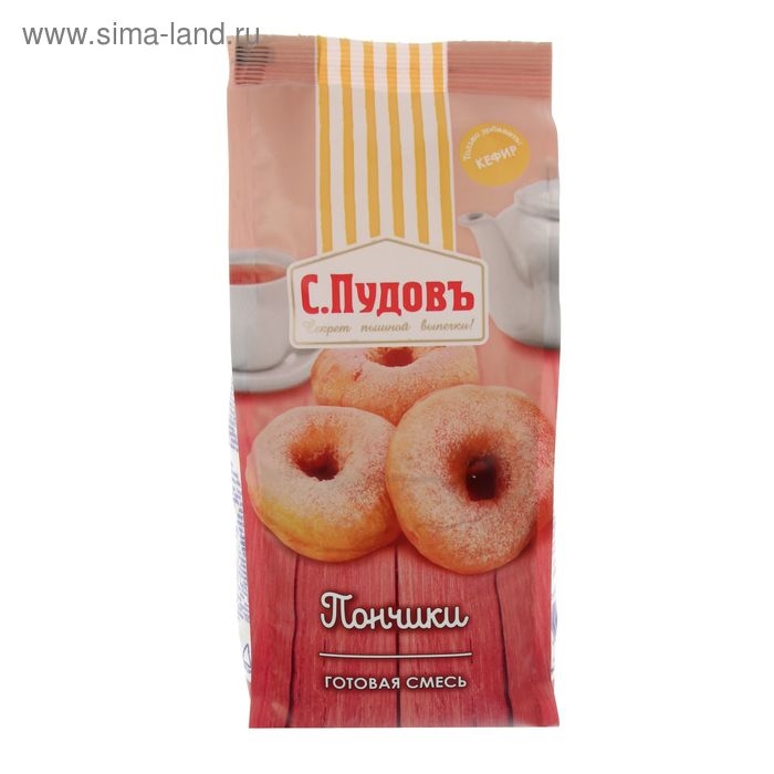 Описание: пончики – вкус, который знаком каждому с детства. Благодаря готовой смеси «Пончики» «С.Пудовъ» приготовить этот десерт дома можно без особого труда и лишних хлопот во фритюре или на сковороде. Всё, что вам понадобится - стакан кефира. Одной упаковки готовой смеси хватит, чтобы приготовить пончики на всю семью или дружную компанию. По традиции пончики подают, посыпав сахарной пудрой. Чтобы она не таяла, используйте нетающую сахарную пудру «С.Пудовъ». Если же вы хотите приготовить донатсы, остывшую выпечку можно украсить глазурью и посыпками – так, как это делают в Америке. Пончики «С.Пудовъ» - просто, быстро и очень вкусно!