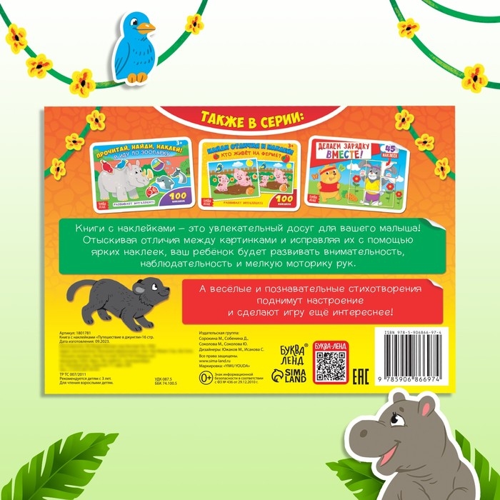 100 наклеек «Путешествие в джунгли», 16 стр.