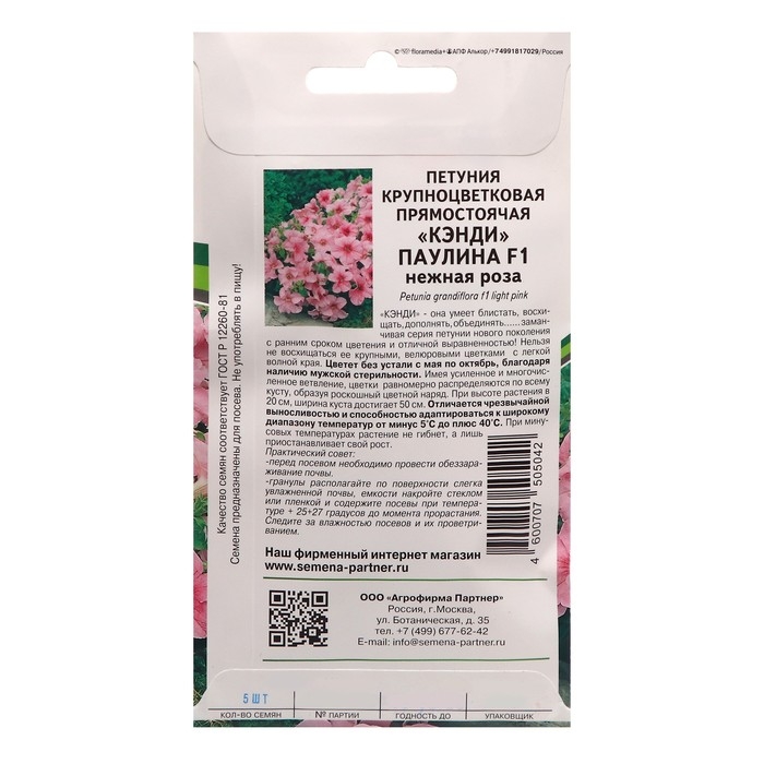 Семена цветов петуния "Кэнди паулина" F1 прямостоячая нежно-розовая, 5 шт.