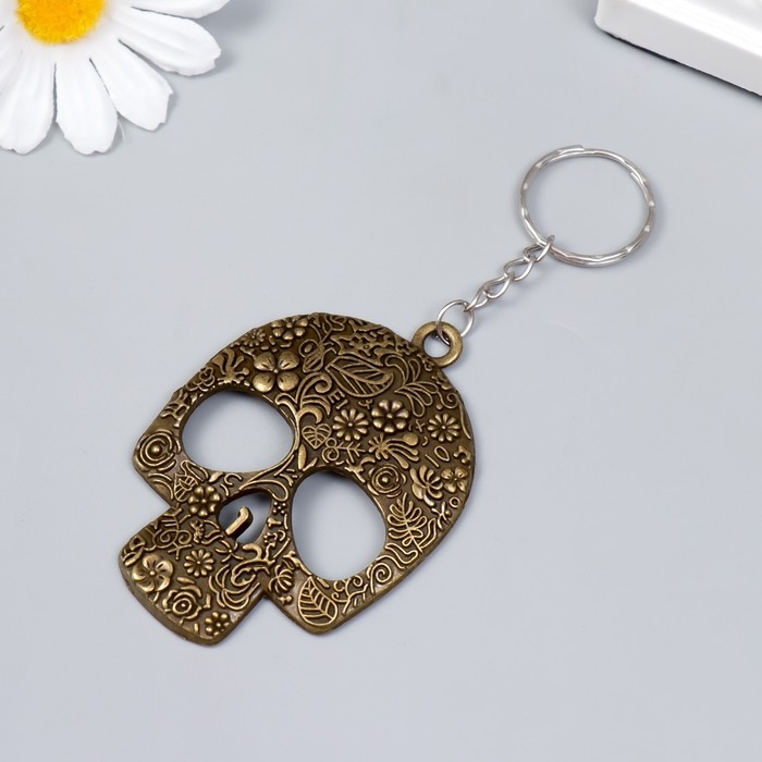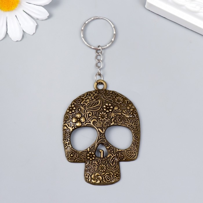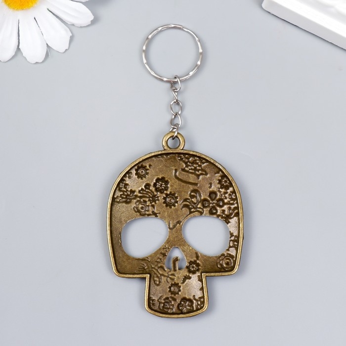 Брелок металл "Череп цветочный" 6,5х5 см