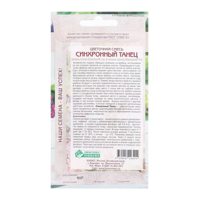 Семена Цветов Цветочная смесь Синхронный Танец, 6 шт