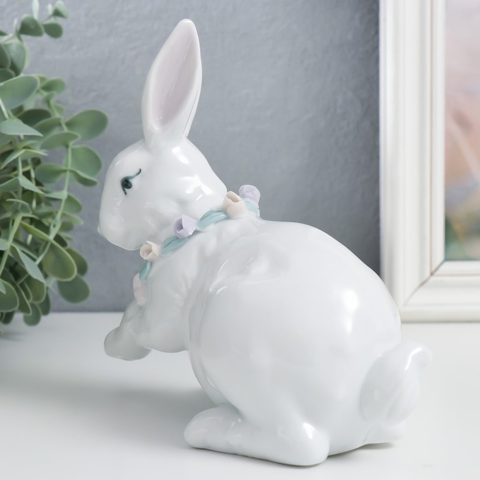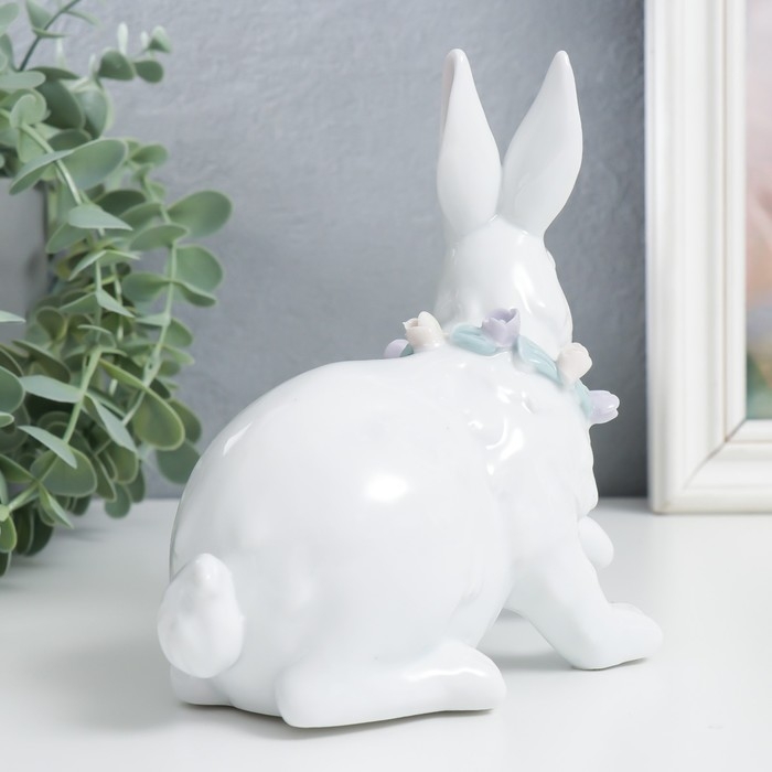 Сувенир керамика "Белая зайка с розовым бантом и розочками" 15х8х15 см