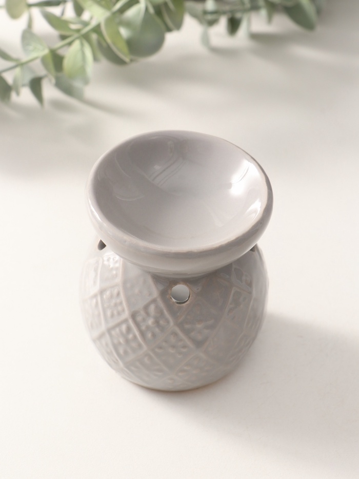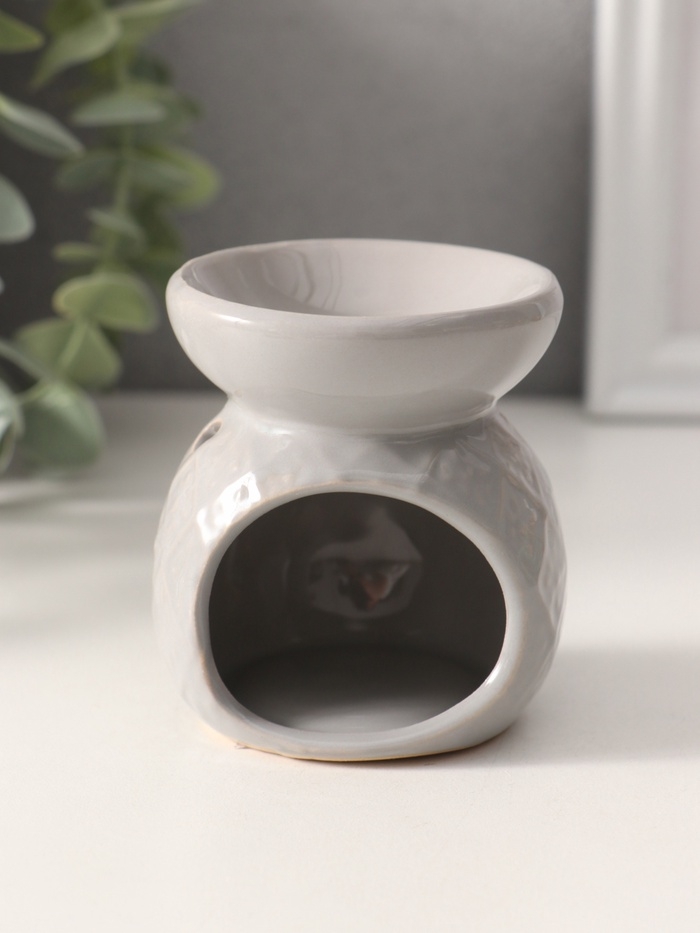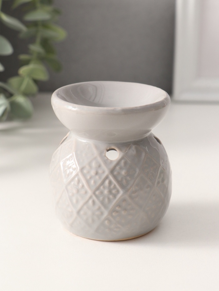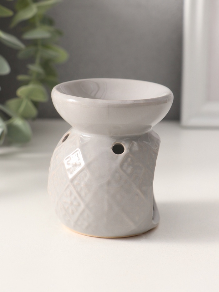 Аромалампа керамика "Цветочки в ромбах" серая 6,3х6,3х7,5 см