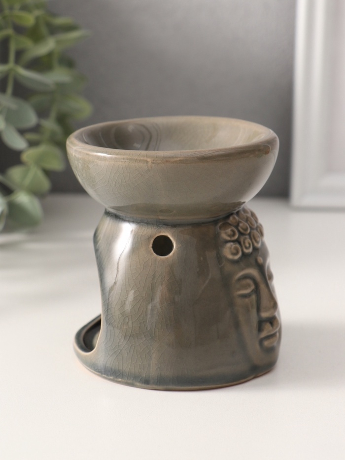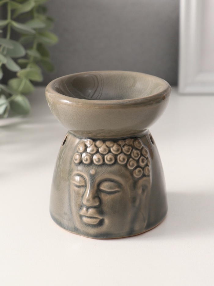 Аромалампа керамика "Лик Будды" серая 8х8х9 см
