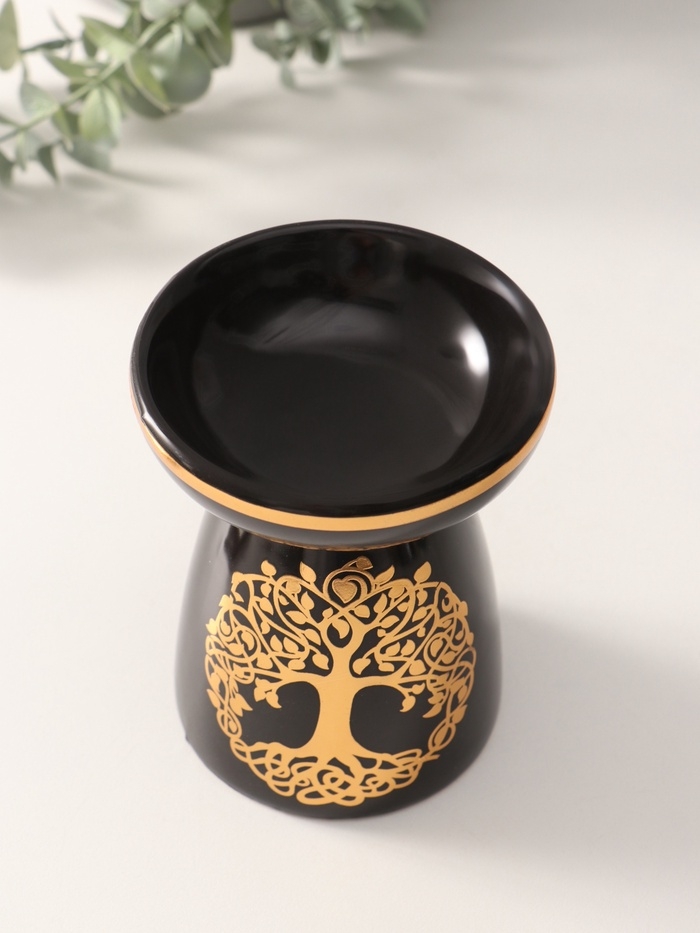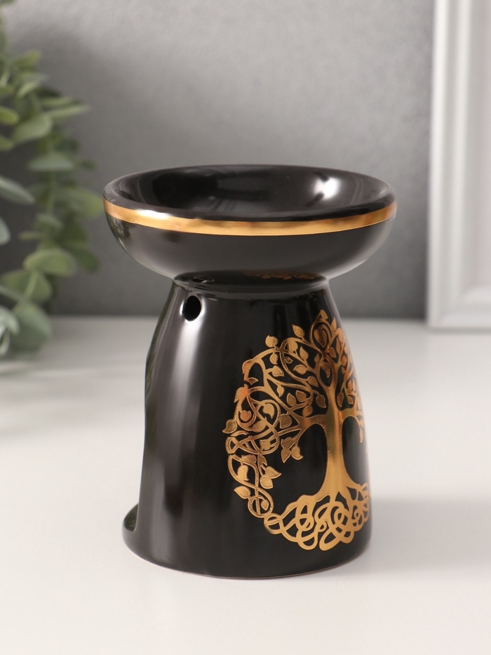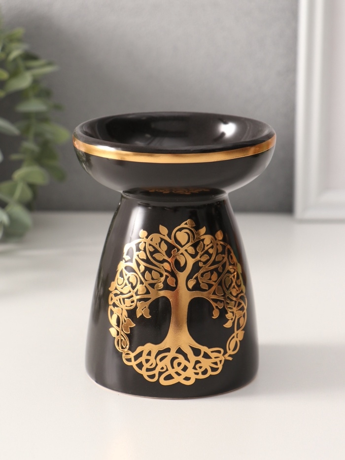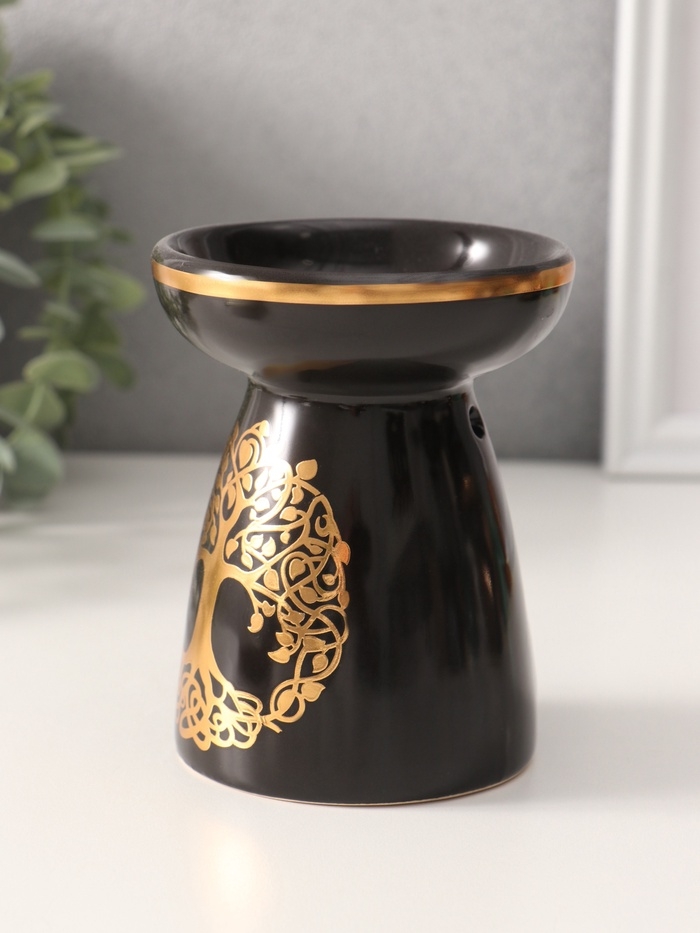 Аромалампа керамика "Древо жизни" чёрная с золотом 9,3х9,3х11,8 см
